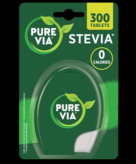 Pure Via® Stevia-tabletter är ett perfekt alternativ till socker – utan kalorier. De är tillverkade med stevia som är en naturlig sötning från bladen på Stevia rebaudiana, en växt som växer i bergen i Sydamerika.